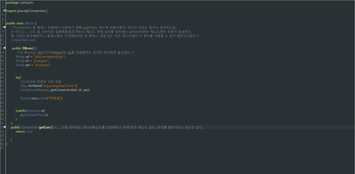 DBcon = DB를 연결시켜주는 곳이랄까??..게임으로 따지면 로그인한다 생각하면 되겠다.