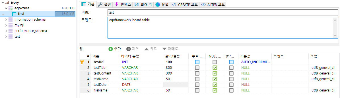 1. egovtest DB 생성