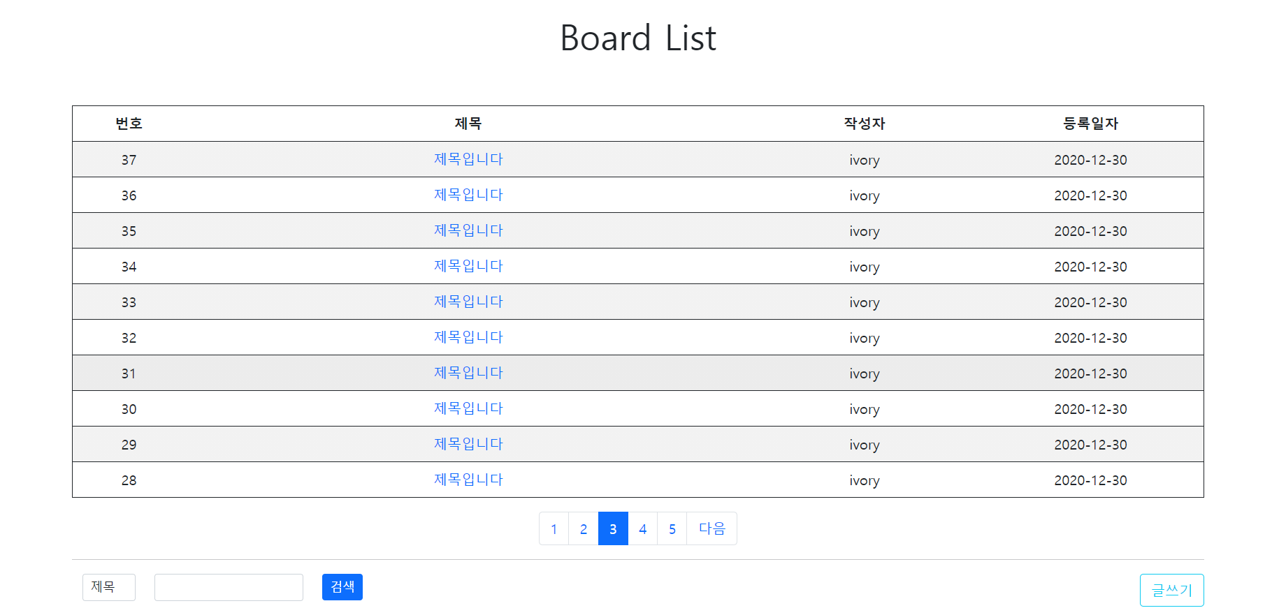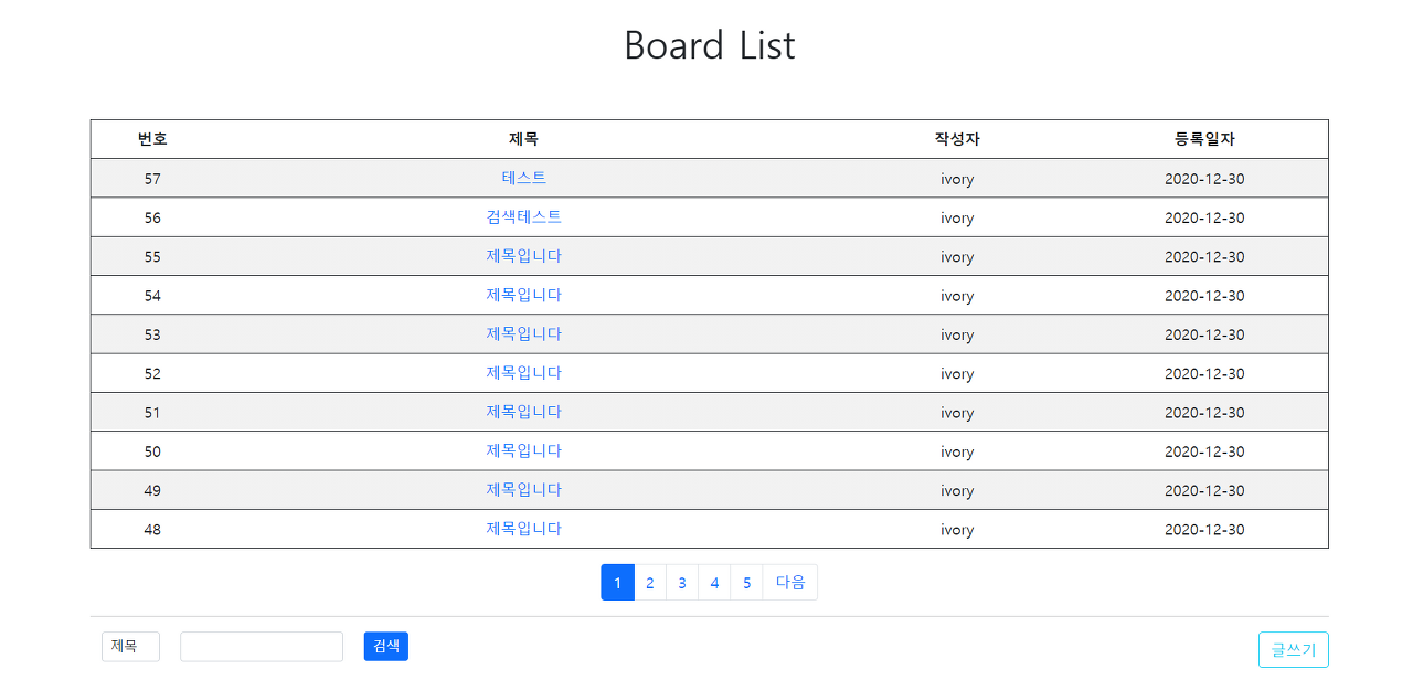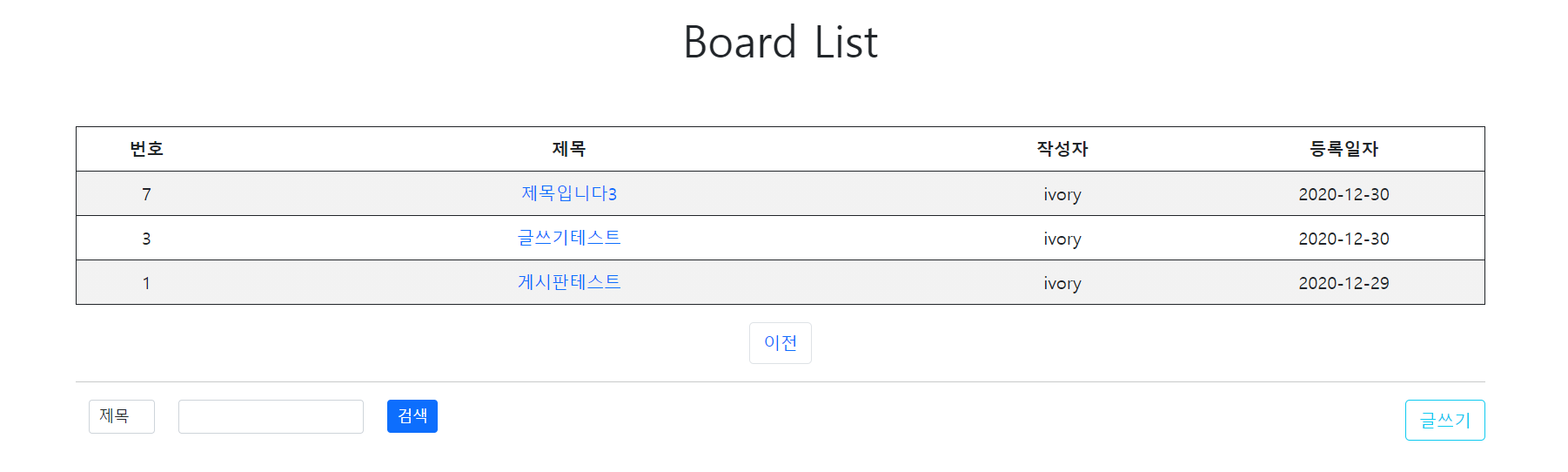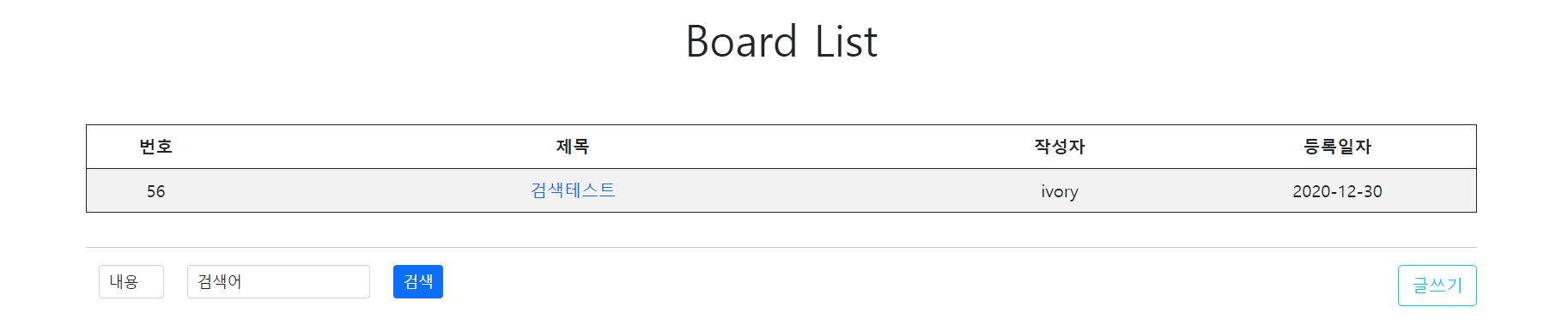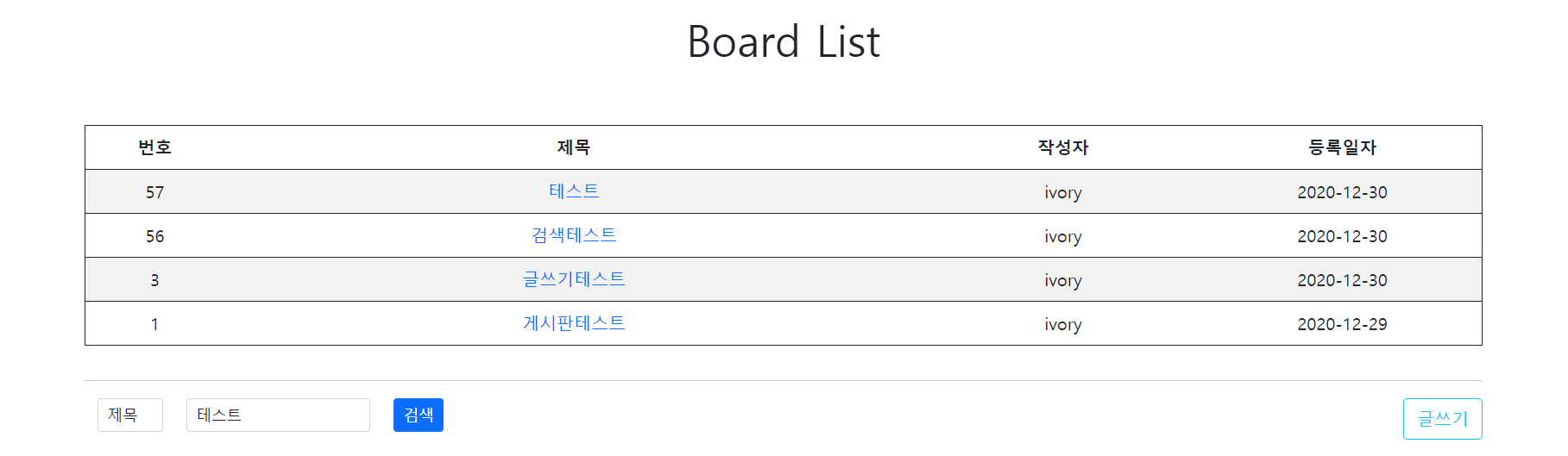 제목을 '테스트'로 검색했을때