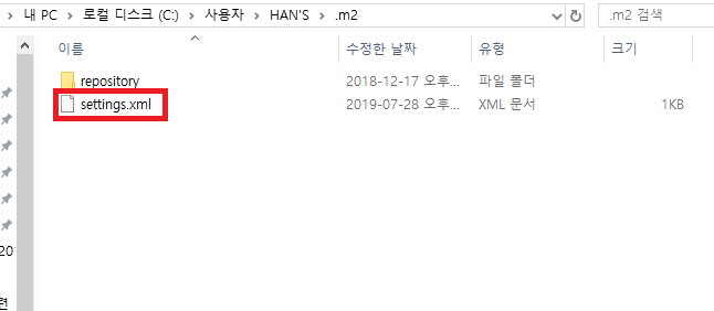 C:\Users\HAN'S(사용자 이름)\.m2\repository