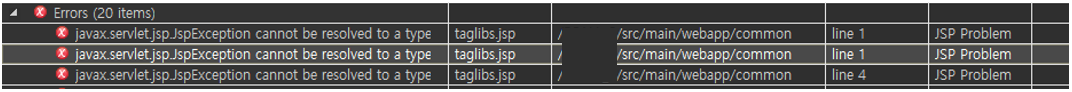 프로젝트 구동하는 데 이상은 없으나 javax.servlet.jsp.jspexception cannot be resolved to a type 이 에러를 해결하고 싶다!