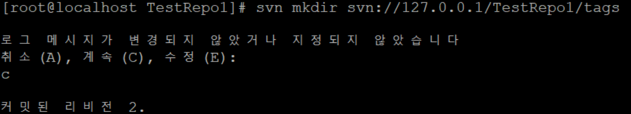 svn mkdir 명령어를 사용할 수 없는 경우, 아래와 같은 메시지가 나옵니다.