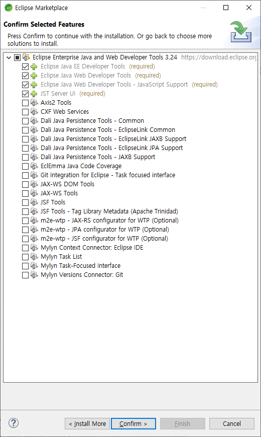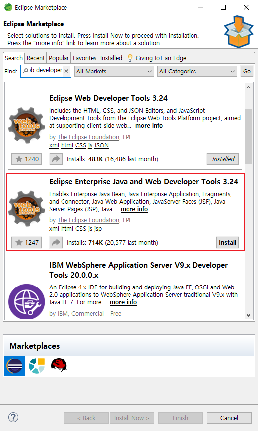 1) Help -> Eclipse Marketplace 에 들어가 Eclipse Enterprise Java And Web Developer Tools 를 install 해준다.