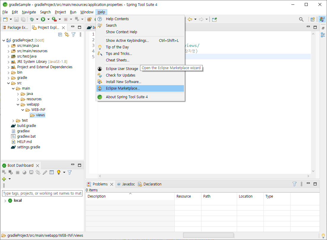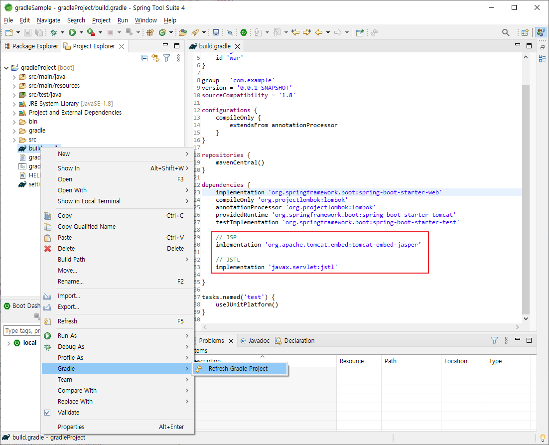 sts(spring tool suit) 에서 스프링부트+gradle+jsp 세팅