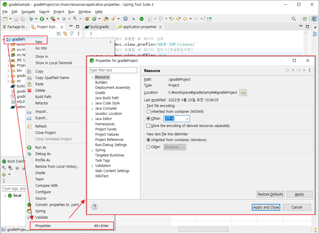 프로젝트의 encoding 타입을 을 설정한다