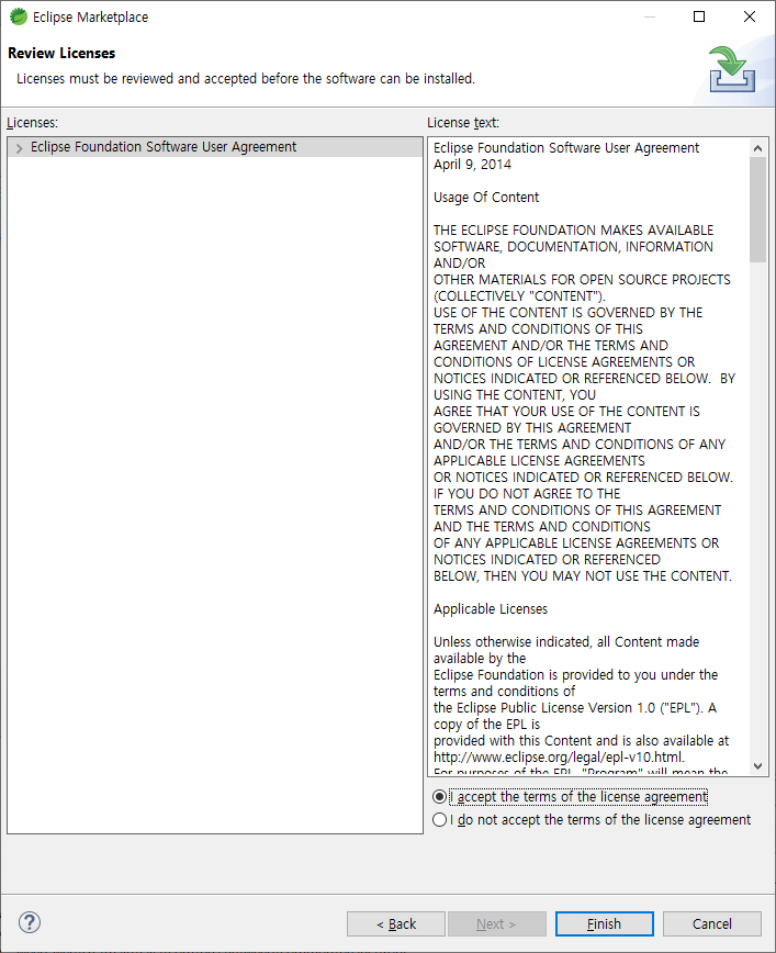 위에 첨부한 이미지와 동일하게 진행 해주면 된다. 설치가 완료 후에는 sts 를 재시작 해 준다.