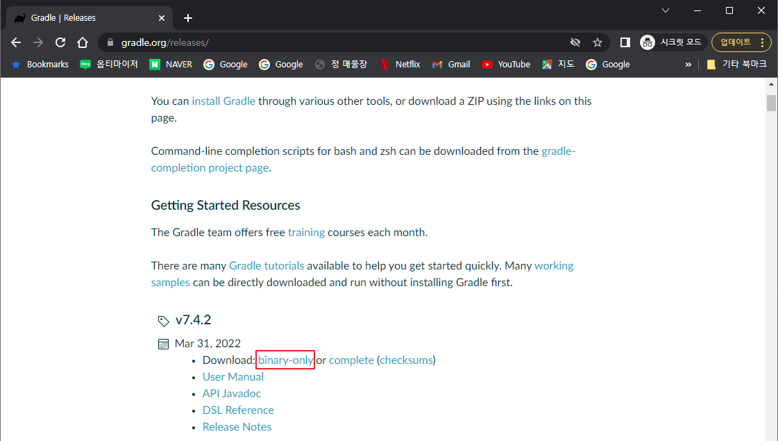 1) gradle 다운로드 사이트 https://gradle.org/releases/