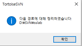 여기서 정리하고 싶은 옵션들을 체크하고 "확인" 버튼을 클릭하시면 됩니다(※ 어떤 오류인지 파악이 되지 않으시면 모두 체크하셔도 됩니다). SVN에 대한 오류 및 불필요한 파일 들을 삭제 해주고 완료되면 아래와 같이 상태 창이 출력됩니다.