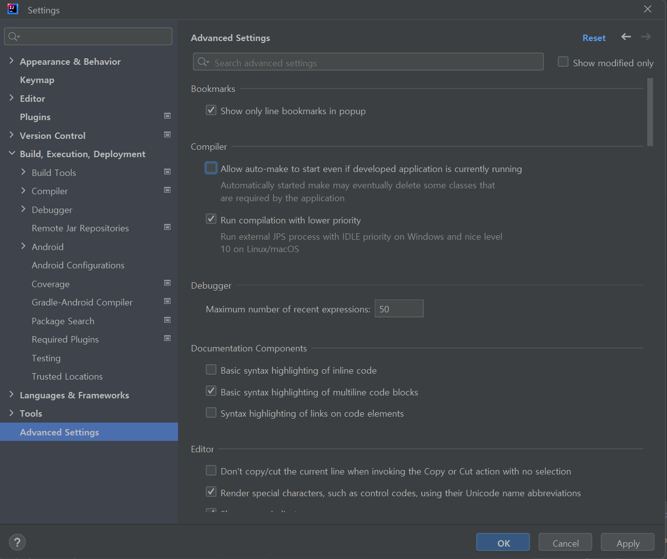 Settings - Bulid,Execution, Deployment - compiler를 찾아 들어가거나,