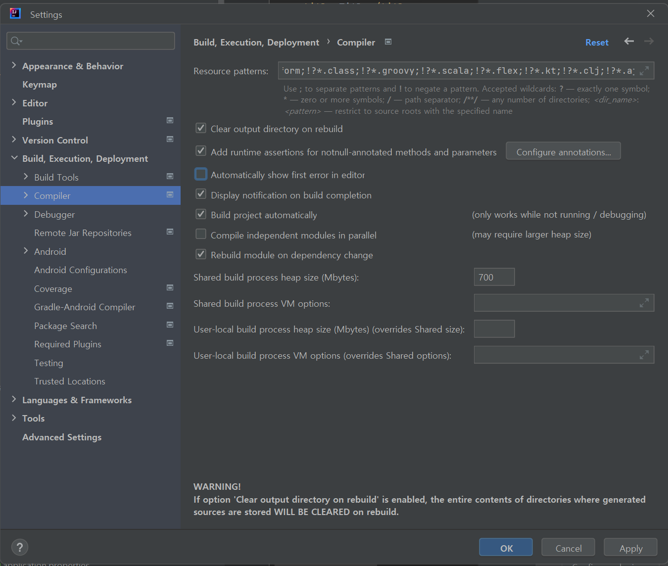 Settings - Bulid,Execution, Deployment - compiler