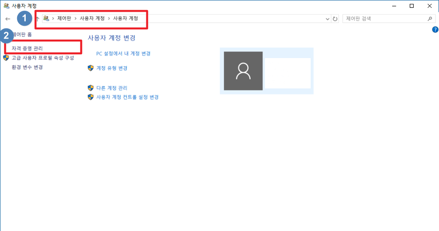 사용자 계정 -> 자격 증명 관리에 들어갑니다.