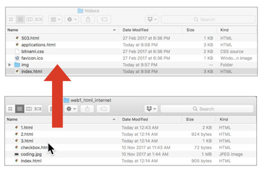 "htdocs 디렉터리의 파일들을 모두 삭제하고, 프로젝트 폴더에 있는 파일을 복사합니다."